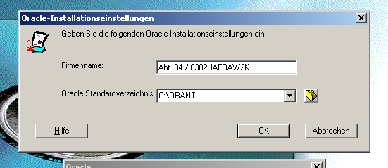 Als Ergebnis müßte ein Verzeichnis ORANT bzw ORAWIN95 mit allen oraclespezifischen Dateien vorliegen.