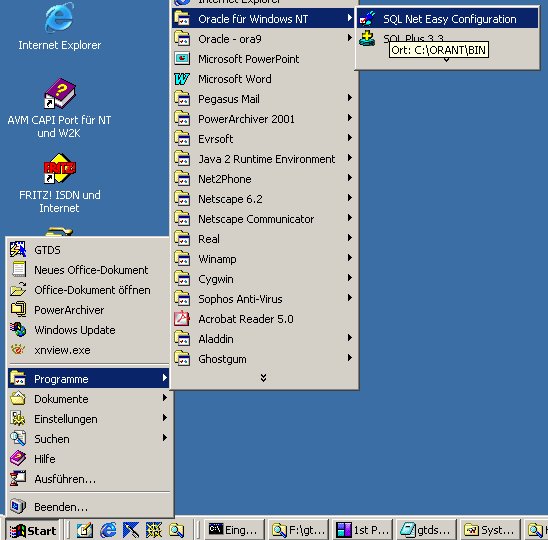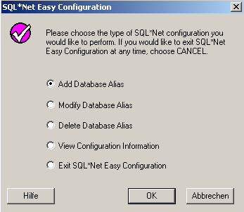 Starten Sie hierzu SQL Net Easy Configuration über das Startmenü (statt "NT" kann auch "Windows 95" stehen).