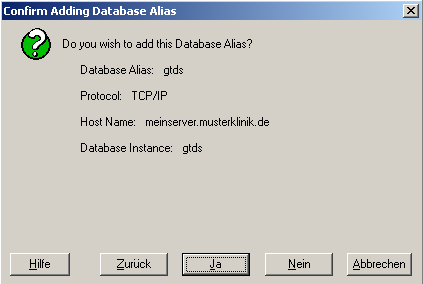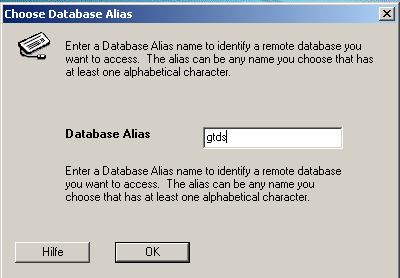 Als Ergebnis müßte ein Datenbank-Alias (in der Regel "gtds") vorliegen, der beim Einloggen ins GTDS oder beim Start von SQL*Plus angegeben werden muß.