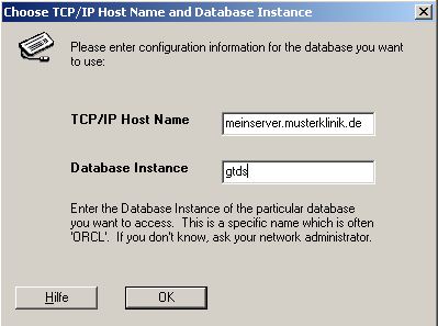 Füllen Sie die folgenden Masken mit den bei Ihnen zutreffenden Angaben aus (insbesondere bei TCP/IP Host Name Ihrem Server-Namen bzw. der IP-Adresse des Datenbankservers, alle anderen Angaben können und sollten in der Regel identisch sein).