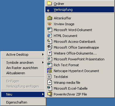 Erstellen Sie auf dem Desktop mit der Kontextmaske eine neue Verknüpfung (die Beispiele sind Bildschirmabzüge unter Windows/2000, in anderen Windows-Versionen gibt es aber analoge Funktionen).