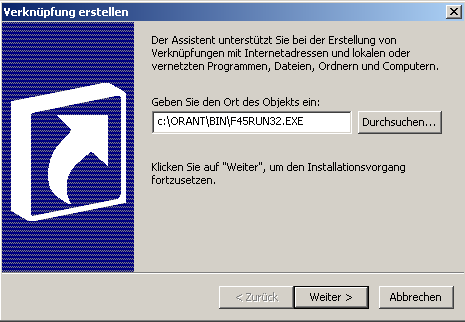 Geben Sie den Pfad zu F45RUN32.EXE an
