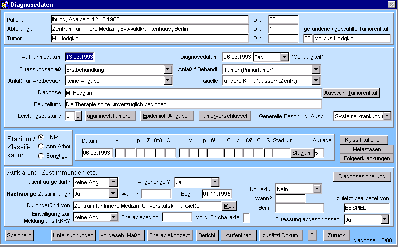 Diese Maske erlaubt die Dokumentation der Diagnosedaten.