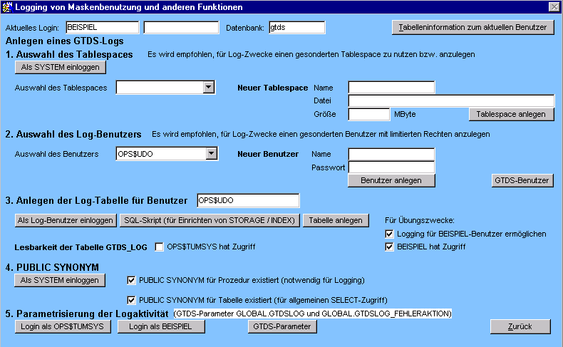 des GTDS-Tablespaces zu vermeiden. Der Zugriff erfolgt ausschließlich