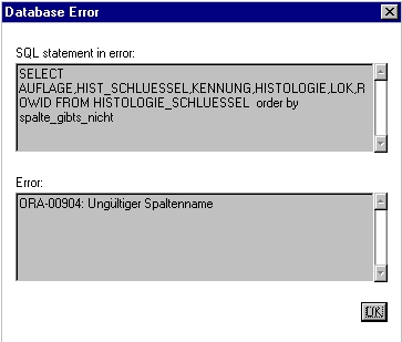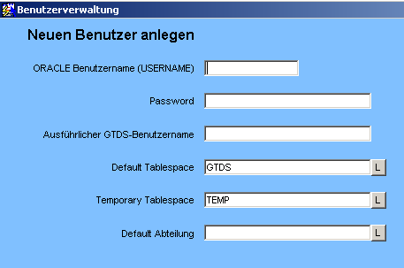 Als ORACLE-Benutzername können bis zu 10 Zeichen eingegeben werden. Welche Namen gültig sind, kann der ORACLE-Dokumentation entnommen werden. Groß-/Kleinschreibung ist nicht wichtig. Leerzeichen und Umlaute können nicht benutzt werden.