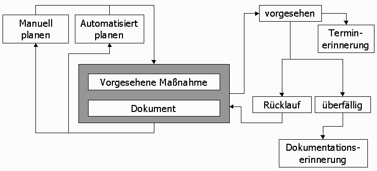 ggf. mehrstufige Erinnerungs- / Mahnfunktionen wegen ausstehender Dokumentationsbögen.Es