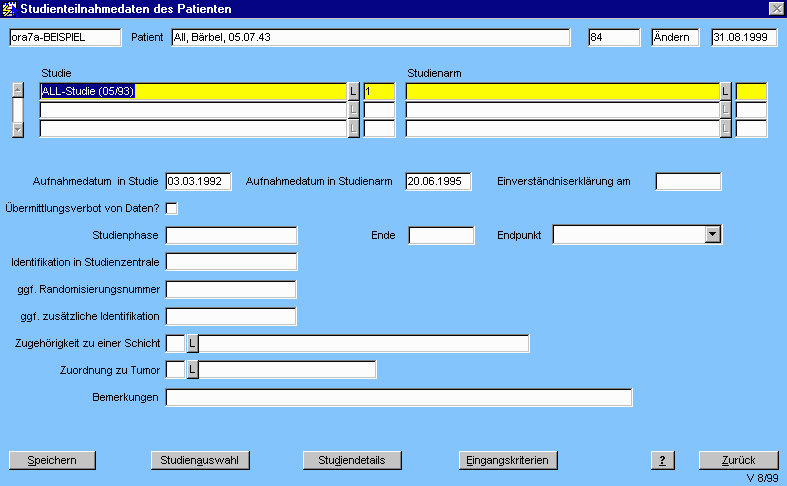 Studie zugeordnet und deren Studiendaten verwaltet werden. Diese Studie