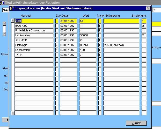 Unter Eingangskriterien werden die zuletzt beim Patienten erhobenen