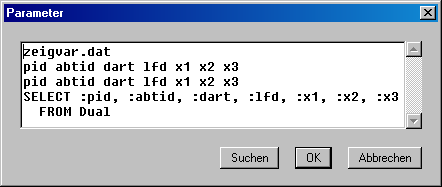 Im Demonstrationsbeispiel wurden die Parameter in folgender Weise als Bindvariablen eingesetzt: