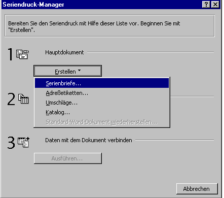 Für die Serienbriefdatei (die unter "Dateiname" in den Parametern steht), wird Word aufgerufen und eine Serienbriefdatei erstellt.