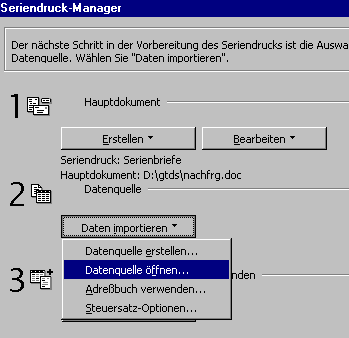 Dabei wird der Brief im "Aktiven Fenster" erstellt. Als nächstes muß die Datenquelle göffnet werden.